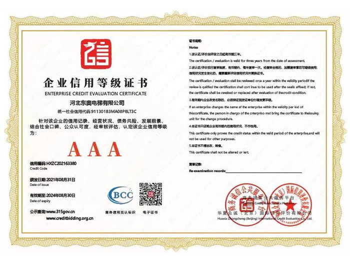 企業信用等級證書