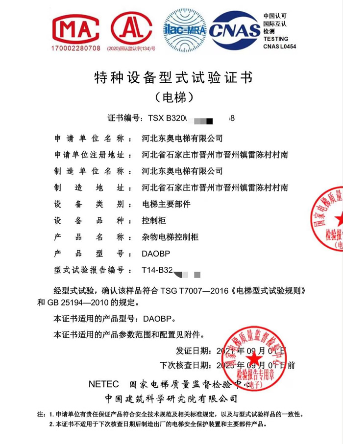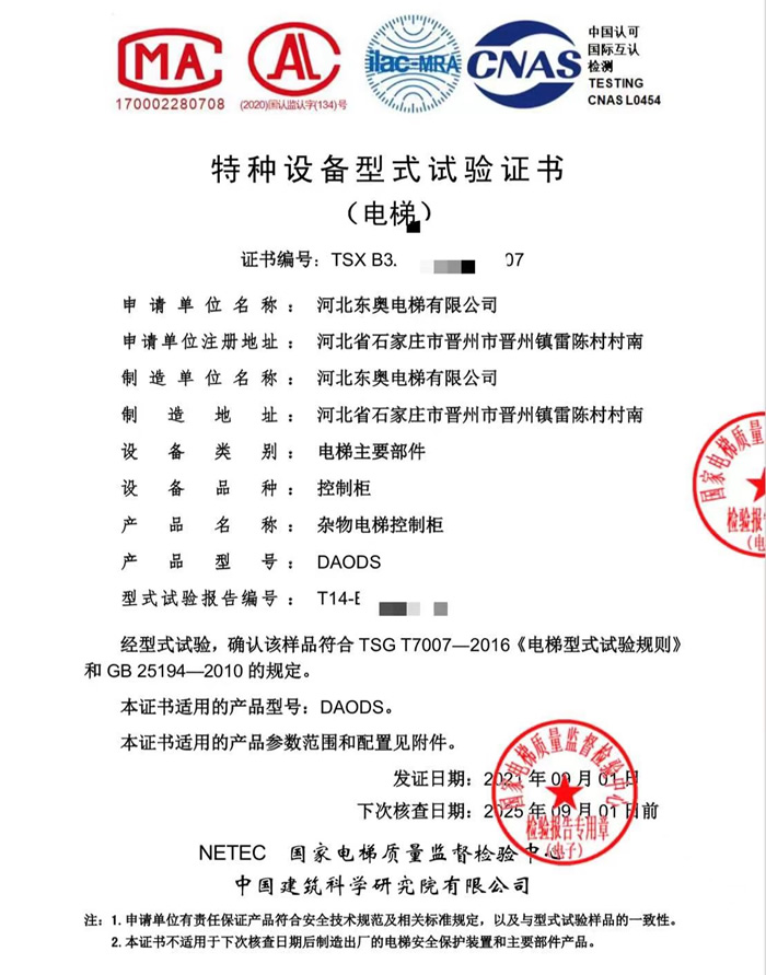 特種設備型式試驗證書